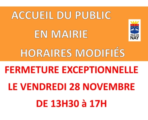 L’accueil de la mairie sera exceptionnellement fermé ce vendredi 28 novembre de 13h30 à 17h.