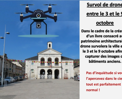 patrimoine architectural, un drone survolera la ville entre le 3 et le 9 octobre afin de capturer des images de