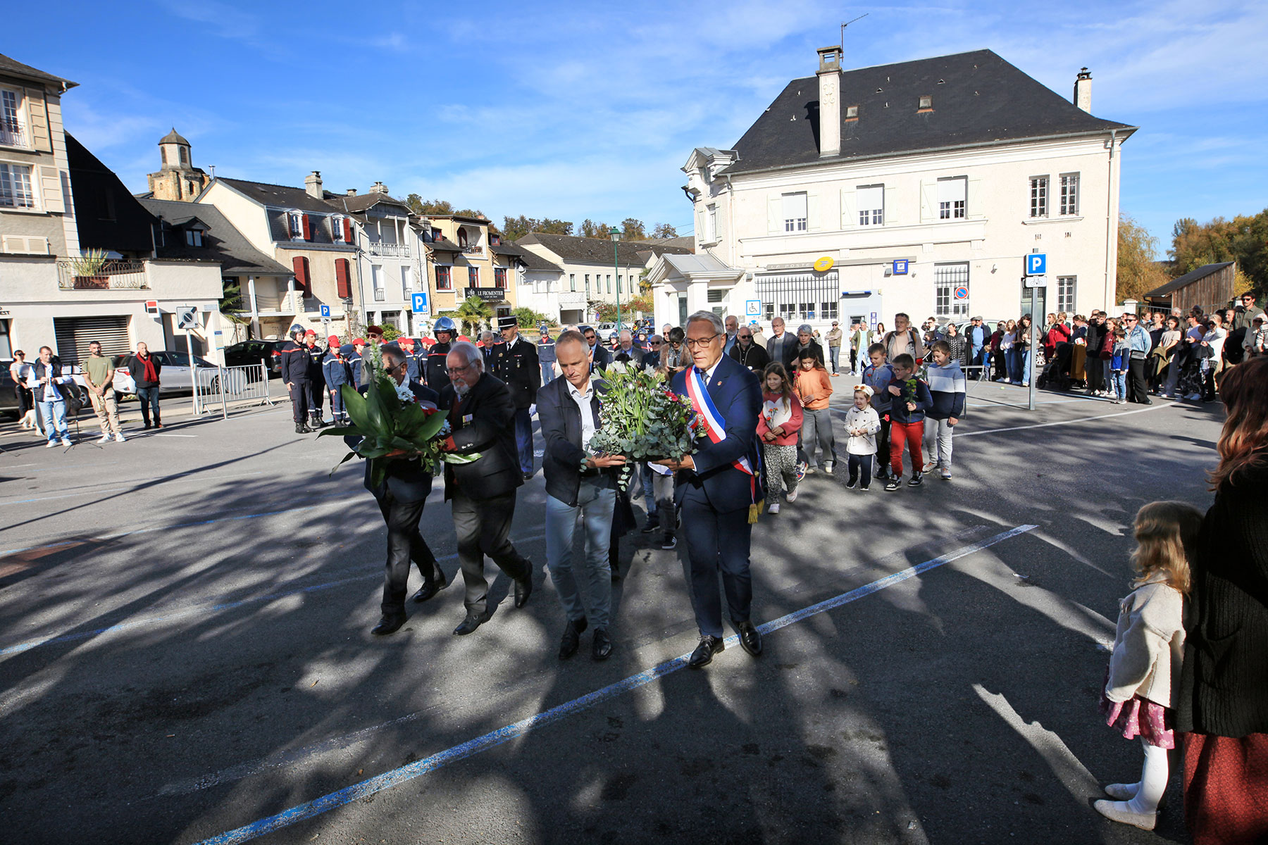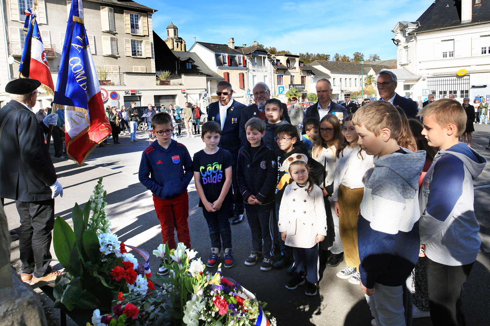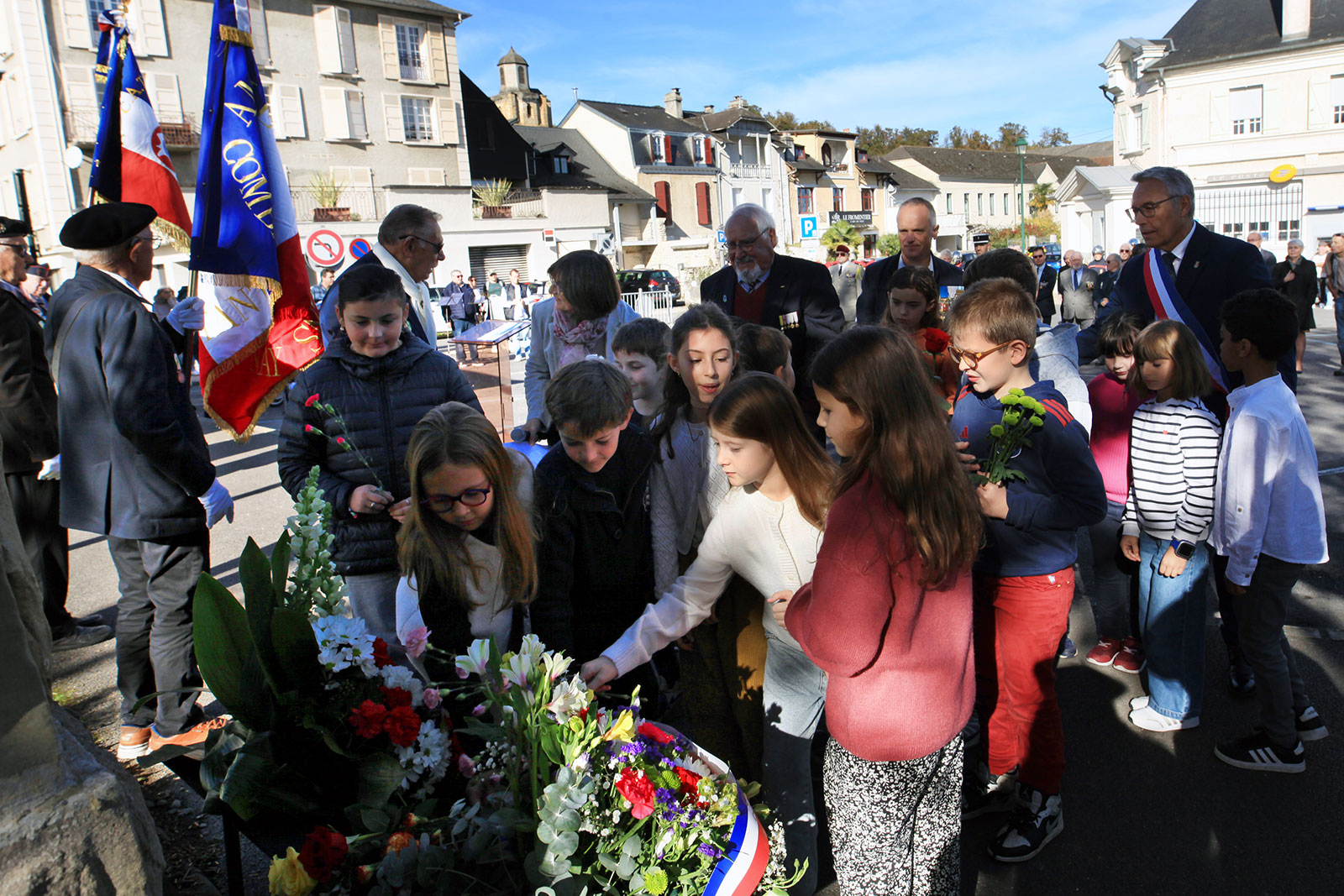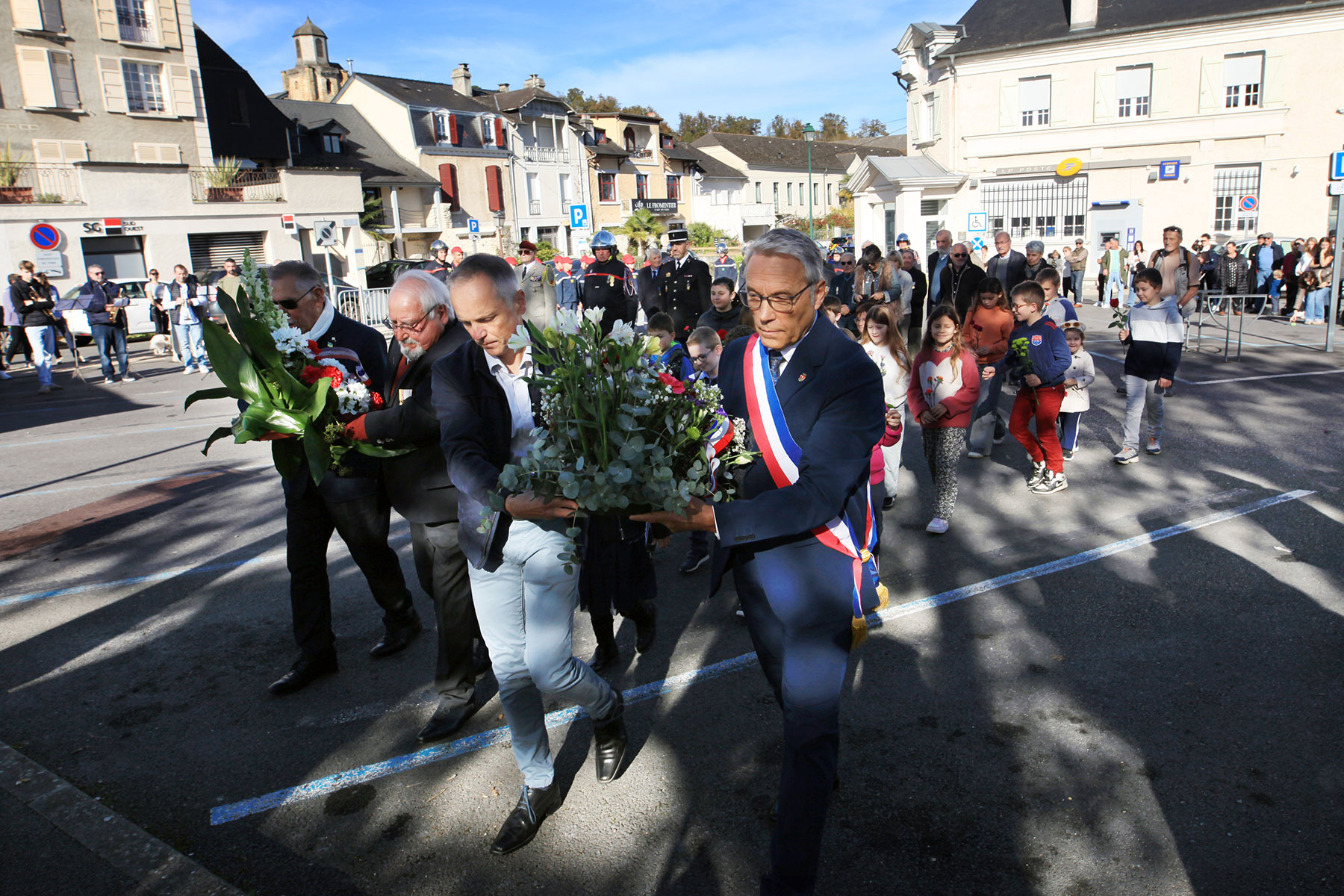 La commémoration du 11 novembre s’est déroulée sous un soleil magnifique, en présence des sapeurs pompiers et jeunes pompiers, de la banda Los Compañeros et d’un public nombreux parmi lesquels un grand nombre d’enfants des écoles de Nay. C’est à eux tout particulièrement que s’adressait le message du Maire qui, rappelant que c’est la jeunesse d’hier qui a défendu la liberté les armes à la main, appelait les jeunes d’aujourd’hui à préserver cette liberté si précieuse en agissant par la parole, par la culture, par la tolérance et par l’action.