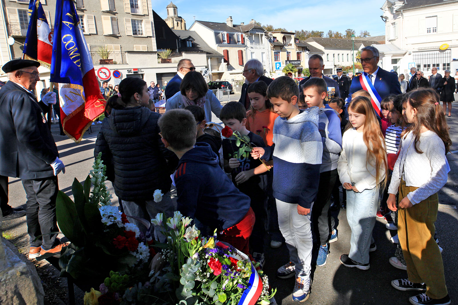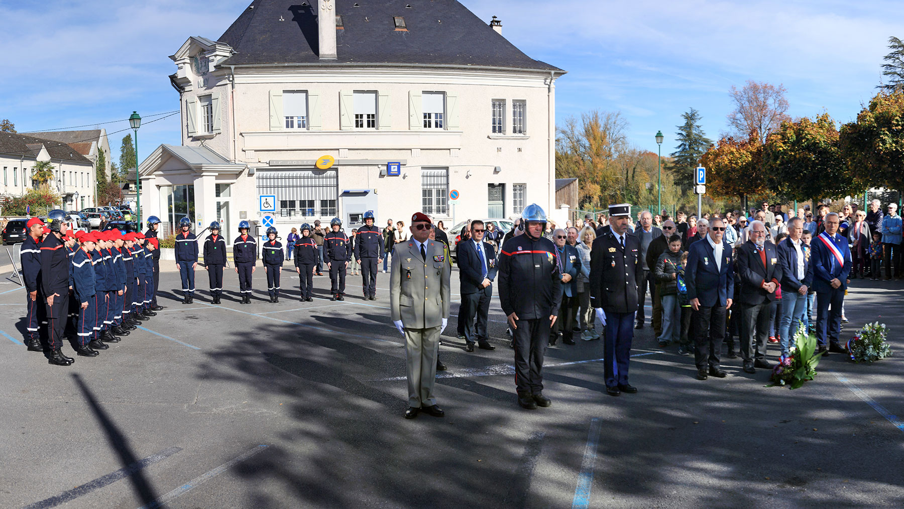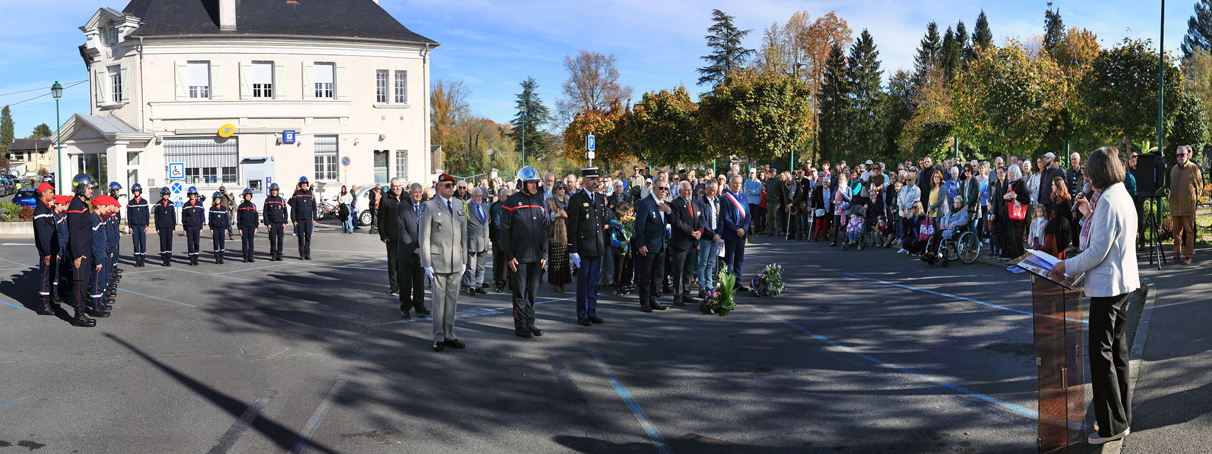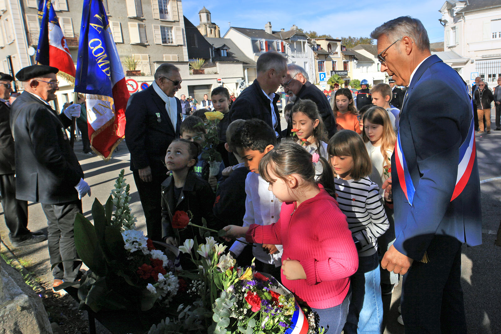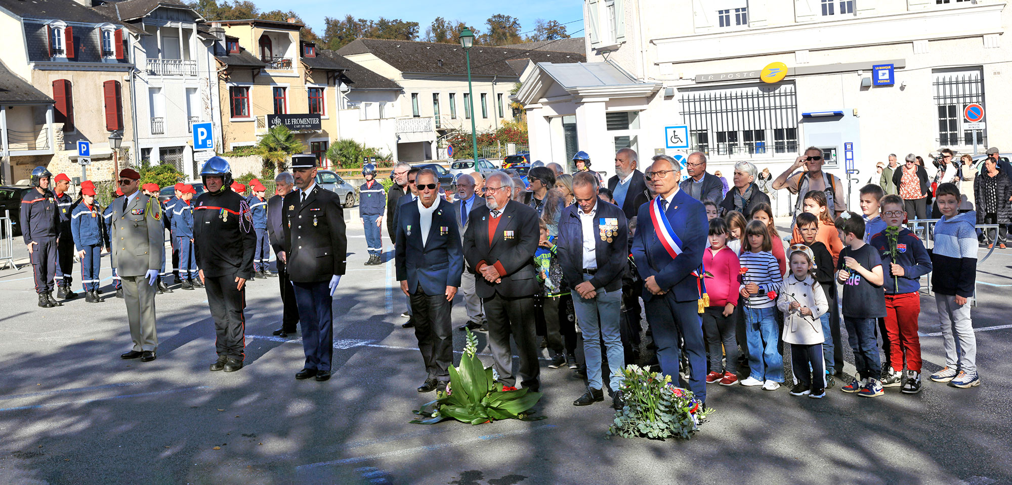La commémoration du 11 novembre s’est déroulée sous un soleil magnifique, en présence des sapeurs pompiers et jeunes pompiers, de la banda Los Compañeros et d’un public nombreux parmi lesquels un grand nombre d’enfants des écoles de Nay. C’est à eux tout particulièrement que s’adressait le message du Maire qui, rappelant que c’est la jeunesse d’hier qui a défendu la liberté les armes à la main, appelait les jeunes d’aujourd’hui à préserver cette liberté si précieuse en agissant par la parole, par la culture, par la tolérance et par l’action.